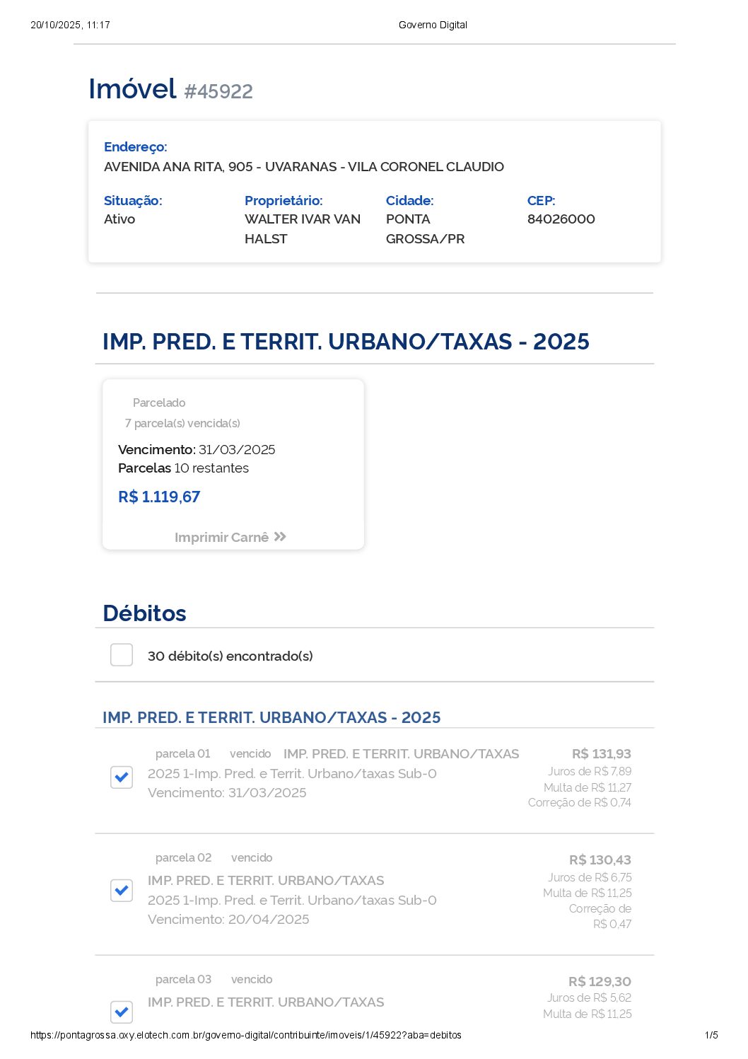 • Status Da Propriedade